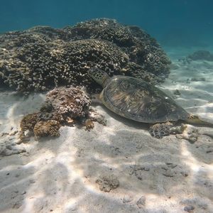 珊瑚の中で休憩している大きな亀さんも眺める事ができました。
