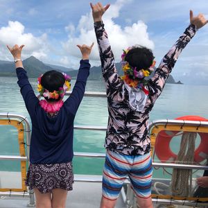 泳げない66歳の母がウミガメを見たいというので申し込みました。初めてのシュノーケル、船から離れないレベルで母を見守ってくれたクルーの方に心から感謝します。ウミガメも船から何匹も見れて、母も大満足でした。午前中だけで済む、コンパクトに内容がまとまっていてとても良いツアーだと思います。シュノーケルをしていたら、真横をウミガメが泳いでいたので、3分ほど一緒の方向で静かに見守りつつ泳げました。人生最高の経験ができました!