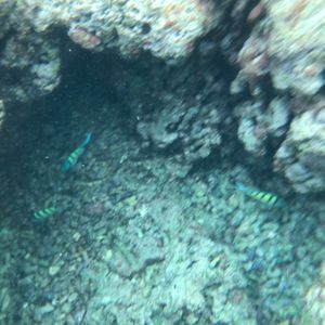 海がとても綺麗で、魚がたくさん泳いでいるのが素敵でした。また、珊瑚がとても大きくて初めて見る光景に息を呑みました。