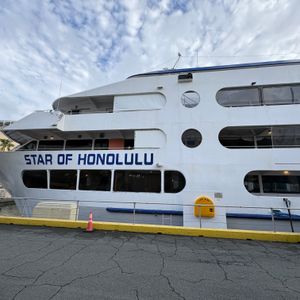 同伴者が初の乗船。生憎の天候でサンセットは見られてませんでしたが、生演奏や食事、夜景のワイキキなどの非日常が良かったです。新婚旅行の方も大勢おりました。写真もサービス(日本人限定?)があり、台紙に入れて貰えました。良い記念になると思います。