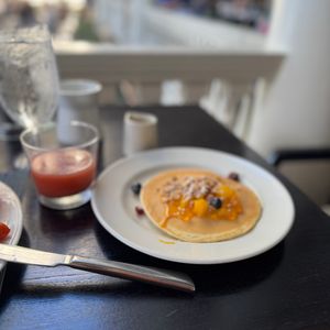 2人の場合、パンケーキともう一品別々なメニューを注文して分けあうのが、おすすめです。(少しだけおしゃれして。)