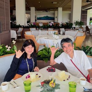 17:30の予約でハレクラニの屋外で夕焼けを見ながら、生バンドの音楽を聴き美味しい食事をとりました。周りのざわつきであまり音楽は聞こえなかったが、雰囲気は良かった。妻も喜んでくれた。飲み物はお金がかかると思ったらノーチェックだった。ドレスコードがあったのでちゃんと靴を履いて行ったが、多くの人はサンダルで来ていた。