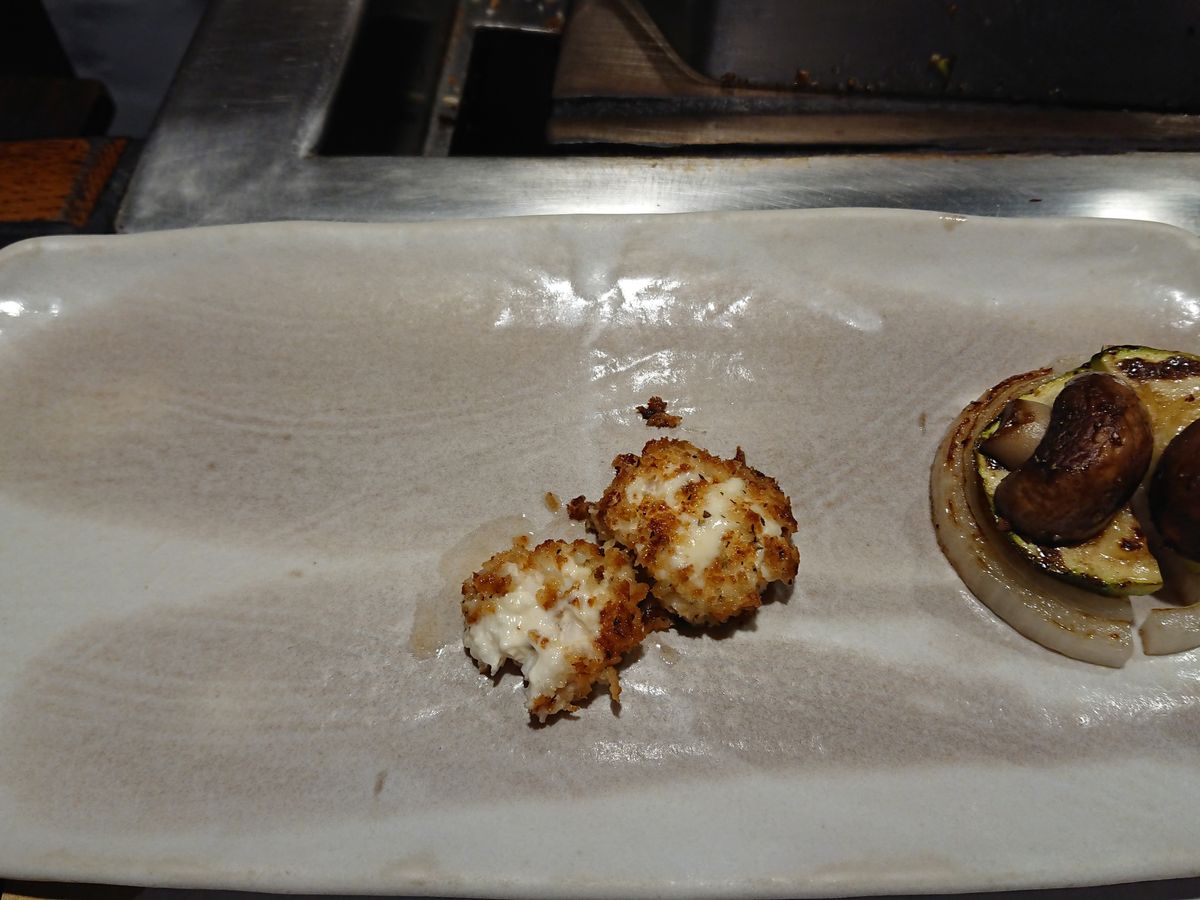 本格的な鉄板ディナーは初めてでした。コースだったので目の前で料理人の方が手際よく調理して、見ても食べても楽しめました❗ワインもついてたので、メニューを見て迷わなくて良かったです。今度は、自分でメニューを見て食べてみたいです❗