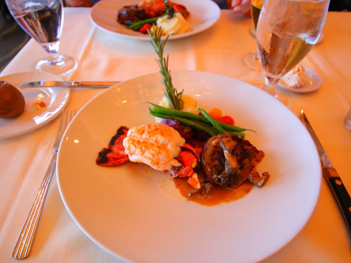 両親と3人で食事しました。エビとカニのシーフードがもりもり、Tボーンステーキは柔らかく美味しかったです!デザートは三種類のケーキでドリンクも選べました!紅茶はたくさん種類のある中から選べて楽しかったです!結構お値段はしますし、日本でもお店はありますが、ハワイに来た記念におススメです!
