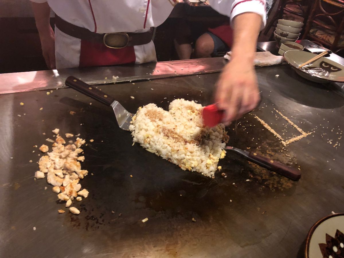 焼いてくれた人が地味にたのしくパフォーマンスをしてくれました。私たちにとってはとてもよかったです。なかなかの人選でした。すべて焼き終わったあと食べていたら、最後にまた来てくれてトランプマジックをみせてくれました。総合的に大変楽しく、もちろんおいしかったです。良い思い出になりました。
