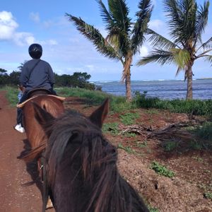 お天気に恵まれ、美しいコバルトブルーの海を見ながらの乗馬体験でしたとてもステキな時間を過ごす事が出来て良かったです。ハレイワタウンでの時間がもう少しあれば尚、良かったと思います。