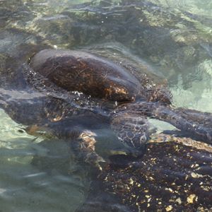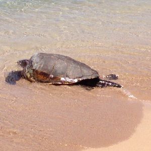 ラニアケアビーチでは、アオウミガメの甲羅干しを見ることができ、感激しました。