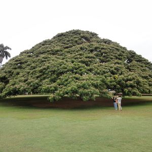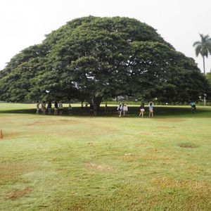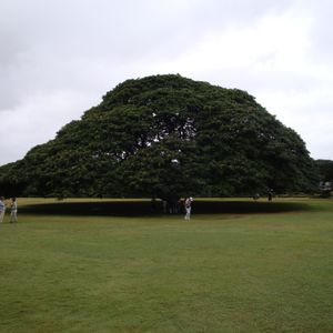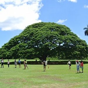 ビーチで遊んでから、TVCMで有名な「この木何の木気になる木♪」のモンキーポッド(ねむ)の木がある【モアナルア・ガーデンズ】へ。