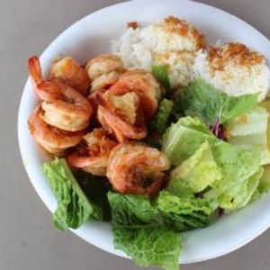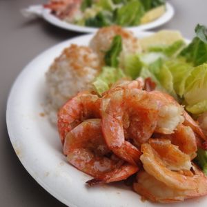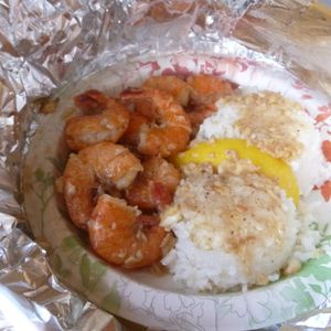 ハレイワでガイドさんが案内してくれたバスで営業しているエビ料理のお店おいしかったぁ(お店の名前不明)