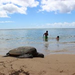ビーチでお昼寝しているウミガメに会えたり、美味しいパイをいただいたり。