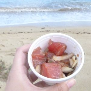 ハワイの名物の「アヒポケ(マグロ料理)」をビーチを眺めながら食べたり、