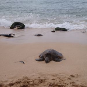 その後、荒い海にも関わらず、海岸に上がってきているウミガメに会えるとこを探してくれたのでチャラかなと(苦笑)