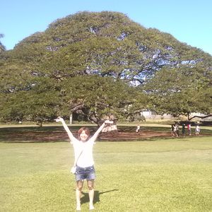 ハワイの海の青さに感動!日立の大きな木に感動でした!