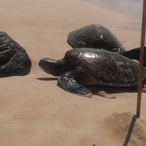 ウミガメビーチでは2匹が甲羅干しをしていました。