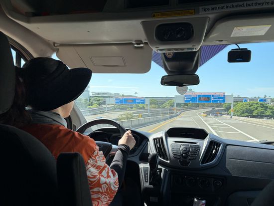 オペレーターは、ピックアップ場所を確認するために前日と当日にテキストで連絡をくれたので、待ち合わせがとてもスムーズでした。車はとても清潔で広々としていて、快適な乗り心地でした。ドライバーはとてもフレンドリーでプロフェッショナルで、乗っている間ずっとアロハスピリットを感じました!空港には余裕を持って到着しました。