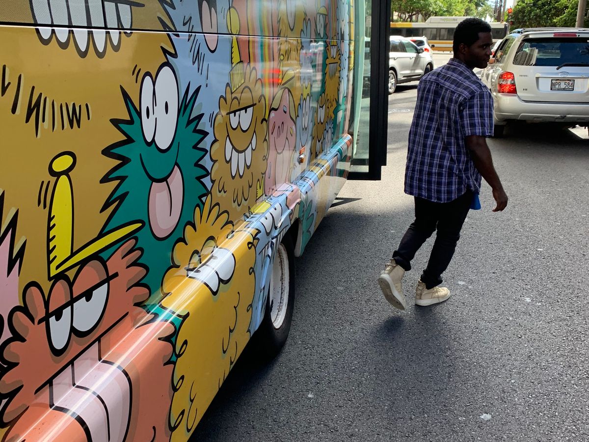 ホテルのコンシェルジュに相談して運行会社のH.I.Sへ連絡を取っていただき、しばらくしたところバスが戻ってきてくれて乗車できました。