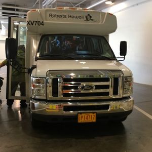 ロバーツハワイのカウンターは迷わず分かりました。日本語を話すスタッフがいらしてスムーズに乗り場まで案内して下さいまして、私達が一番の客のようでした。道が混んでるようで送迎車到着まで少し待ちました。(その間に用意しておいたsimカードを入れ替えたりして時間を使えました)
