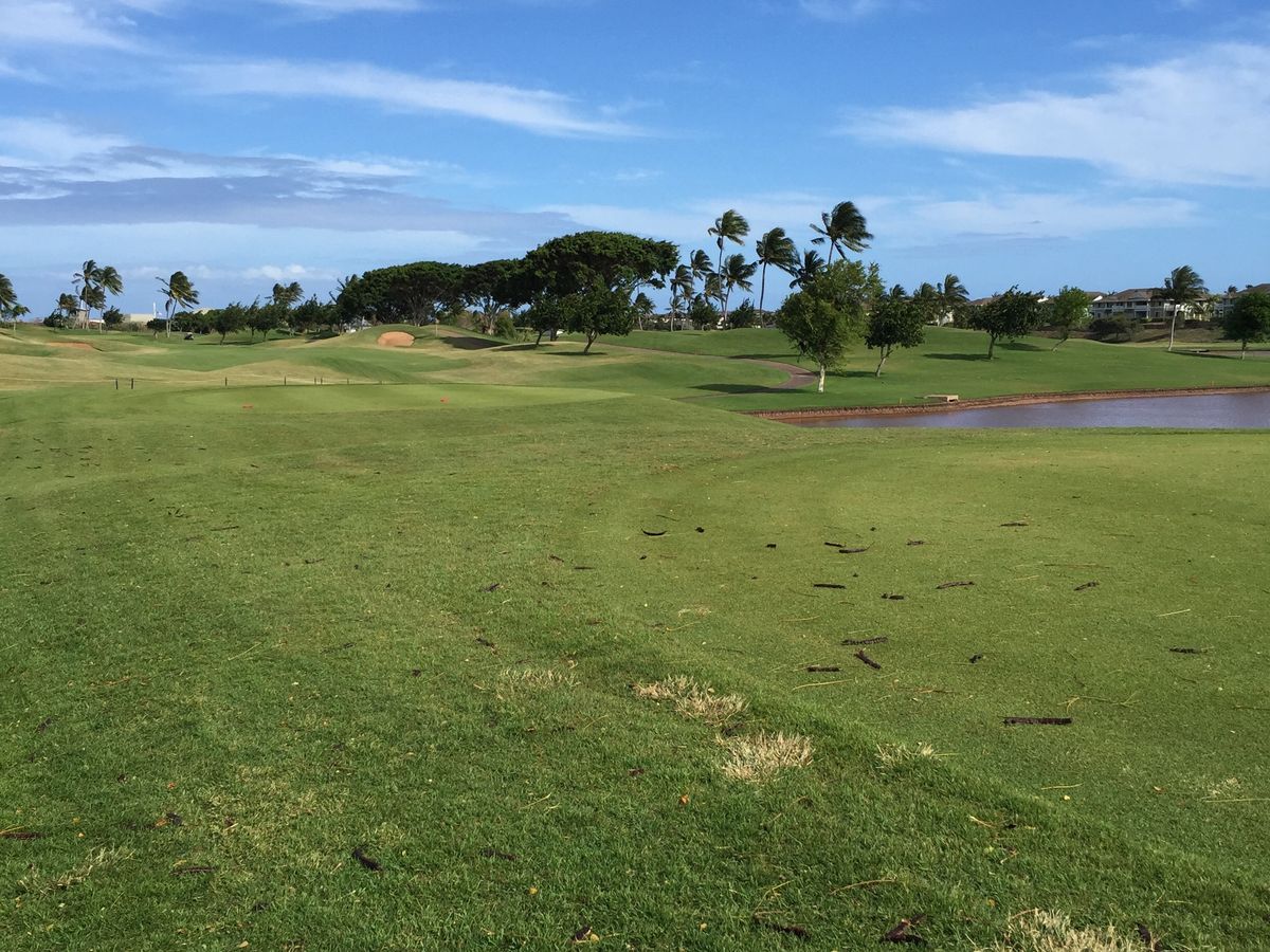 とてもきれいなコースでした。当日は良い天気でしたが前日に雨が降った為カートが中に入れずまた今年のハワイは蒸し暑く高齢で股関節が悪い父は母と共にハーフでプレイを終えてしまったことが非常に残念です。