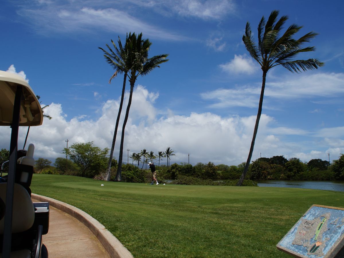 午後のスタートを予約しました。初日は、私の勘違いで、待ち合わせが上手くできませんでしたが、迎えに来てくれたドライバーが私たちを探してくれ、何とか間に合いました。とっても親切なドライバーさんで、帰りにはチップを弾みました。ゴルフ場のメインテナンスは良く、とっても楽しいゴルフとなりました。ハワイですので、風が強く、それでも楽しいゴルフになりました。2日目も同じ午後のコースでしたが、待ち合わせは間違いなくコースへ行けました。