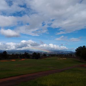 どのホールからもダイヤモンドヘッドや真珠湾が見渡せて、景色が堪能できるコースでした。終わり頃には遠くの方でしたが虹のオマケもあり、送迎のリムジンでの帰りのビールがのどの渇きを癒してくれました。
