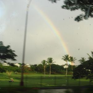 主人とふたりでワイケレゴルフで、プレイしました。丁度雨が、あがったばかりで車の中から綺麗なレインボーを見ることができました。ゴルフ場は、あまり広くなく、距離もなくショートコースを回っている感じです。住宅が、すぐ隣接しており、打ち込んでしまわないかと心配でした。お庭で金髪のお父さんがサンデッキに座りながらティーショットを眺めており、思わぬギャラリーに緊張いたしました。コース自体は、手入れが行き届いており良かったです。レンタルクラブも悪いものではないですが、レンタル料が少し高いような気がします。次回は、マイクラブを持参して他のコースでプレイしたいです。アランちゃん素敵な思い出をありがとうございます。