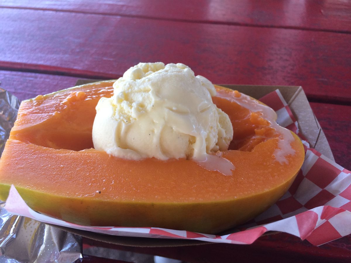 それにいつも時間を有効に使ってくれてありがとうございます。ツアー空き時間のフリフリチキン、ガーリックシュリンプ、そして初のパパイアアイスおいしかったです。