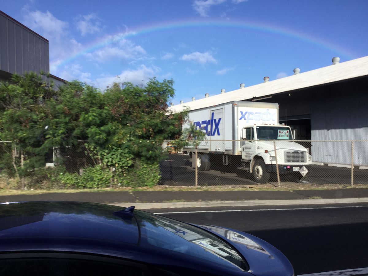ワイキキ近くになり雨が降り出し直ぐ晴れレインボーに歓迎を受けました(^○^)