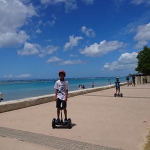時間通りにホテルまで迎えに来ていただき、アラモアナビーチパークで体験しました。ガイドさんは2名付いていただき、丁寧にレクチャーしてもらえたので、5分ほどで家族全員乗れるようになりました。その後は公園内だけでなくビーチ沿いを走行しながら、写真をたくさん撮っていただき良い記念になりました。途中からはガイドさんが乗っていたナインボットも体験させていただき、子どもたちはもちろん大人も十分楽しむことができました。また終わった後は、ホテル以外でも送りますよと親切に言っていただき、お言葉に甘えてインターナショナルマーケットプレイスまで送っていただきました。大変満足できるアクティビティだと思います。次回渡ハした時には、カカアコのコースを体験したいと思います。