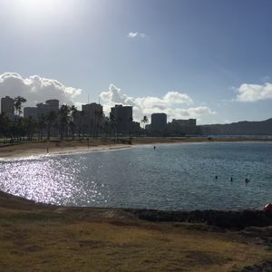 アラモアナパークのビーチサイドも、爽やかな風に吹かれて、お楽しみ