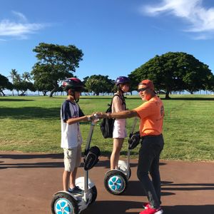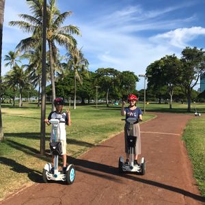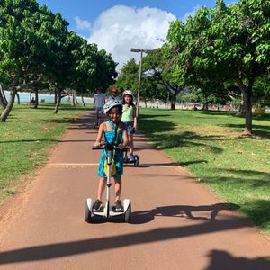 セグウェイに乗りたい!と思い、10歳の長男と一緒に参加できるツアーを探していたところ、こちらにたどり着きました。運動音痴なので乗れるまでに時間がかかるかなと心配していましたが、インストラクターさん2人が私と息子をマンツーマンで見てくださったので、すぐに乗れるようになりました。ナインボットミニに乗って、ハワイの風を感じながらアラモアナビーチパークを散歩するのがとっても気持ちよかったです。景色も最高で、写真や動画もたくさん撮っていただきました。