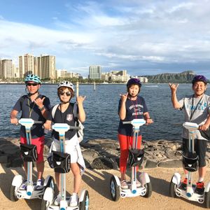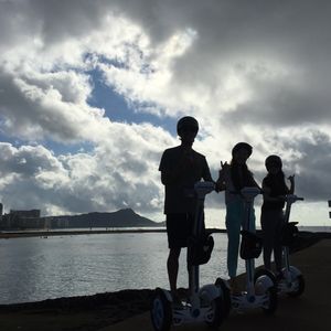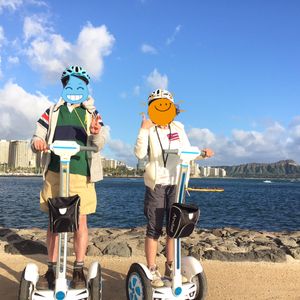 最初に操作方法を簡単に説明してもらってから、すぐに乗車となりました。やはり、最初のうちは緊張しましたが、みなさんおっしゃる通りすぐに慣れて乗れるようになりました。その後10分ほど各自練習してから、公道にでてアラモアナビートパークへ出発。インストラクターもとても丁寧に引導してくださいましたし、いろいろと楽しいお話もしていただき、90分にわたるツアーは最高なものとなりました。家族みんな「最高に楽しかった!!」と言っていましたし、様々なオプショナルツアーに参加してきましたが、また参加したと思うツアーでした。