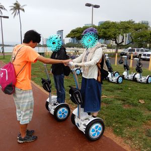 初めにアラモアナパークでエアーウィールの練習時間があって、丁寧に教えてもらえるので すぐ乗れるようになります。慣れれば簡単です。