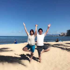 初めてのハワイ旅行。快晴の空の下、青く輝く美しい海と白い砂浜、心地よい波風という最高のロケーションでヨガを体験しました。朝一番のフレッシュな空気を胸いっぱい吸い込み、ハワイの魅力を存分に味わえました。