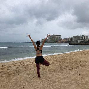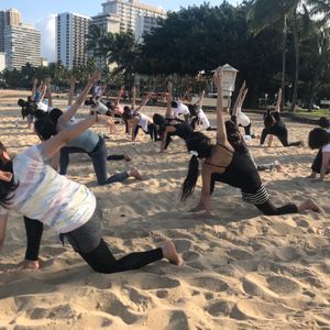 ヨガは初心者ですが、ハワイでヨガをしてみたい!ビーチでヨガをしてみたい!という想いから、参加してみました。天気がとてもよく風も吹いており最高のヨガ日和でした!バスタオルかヨガマットをみんな持参しており、最後のストレッチの際に使用しましたがほとんどは直接砂浜の上で行ったため、汚れてもいい服、膝下のズボンの方が痛くなくていいと思います。内容は不安定な砂浜の上で体幹を鍛えるようなヨガで、ハードでしたが終わったあとはとても気持ちがよく、良い疲労感でした!先生も優しく参加者の方に初心者も多かったため、決して楽ではなかったのですがとても良い雰囲気でした。また参加したいと思います。