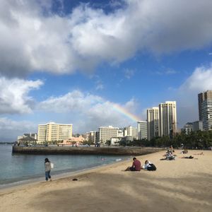久しぶりのハワイ。悩んだ結果、主人とは別行動でビーチヨガひとりで体験することにしました。朝活的な感じでしたが、適度な疲れもあり爽やかな朝を迎えることができました。とても楽しかったです。始まる前に少し雨が落ちていましたが、 そのおかげで虹を見ることもできましたし、途中から日もさしてきました。本当に参加してよかったです。