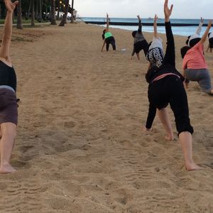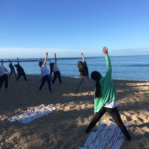 2017年11月9日に友達と二人で参加しました。参加者は20人位の大所帯でした。AM7時にホノルルズーの入り口で集合し、ビーチまで歩きました。ヨガを始めた時はちょうど日陰になっていました。笑顔の素敵な先生は、英語と日本語でレクチャーしてくれました。ただし、大きな声を出してもらってたと思いますが、波の音や風の音にかき消され、聞こえづらいので、先生の近くを陣取ってください!そんなに難しいポーズはなかったと思いますが、手も足も砂の中に埋まっていくので、スタジオでポーズ取るよりも難しく感じました。終盤は日陰もなくなり、直射日光を浴びることになりましたが、それもまた一興。波の音、そよぐ風、砂の重み、ビーチヨガの醍醐味を満喫し、大満足です!そして帰り道では虹も見ることができ、さらに大満足!ホテルに帰って朝食をとり、洗濯をし、小一時間追加のシャバサナ時間をとり、ゆったりハワイアンホリデイを楽しみました!!!