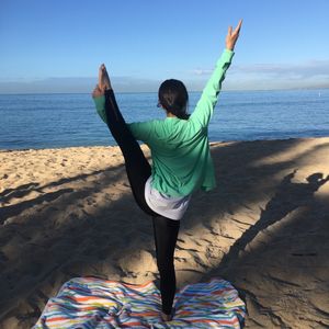 ハワイの気持ちの良い気候、綺麗な景色、波の音を感じながらのヨガは本当に最高でした。