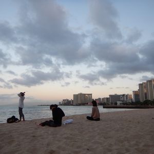 夫婦2人で朝ヨガに参加しました。12月のオフシーズンだったということもあり、レッスンは参加者4人という少人数でした。そのおかげで先生から一人一人アドバイスをもらい、時間をかけてしっかりとヨガをすることができました。夫婦揃ってはじめてのヨガということで、身体が上手く使えず苦戦しましたが、ワイキキビーチの目の前で深く呼吸をしながら自分の身体と向き合い過ごした朝は、とても素敵な時間でした。終わりには、ちょうど虹がかかり最高な1日の始まりとなりました。