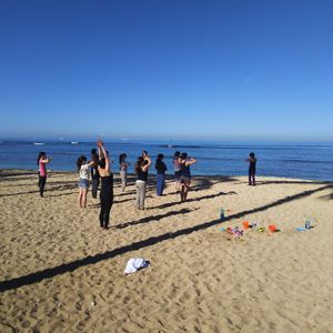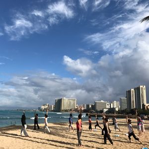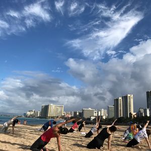 普段は教室でヨガを習っていますが、ビーチヨガ初体験してみました。場所はホノルルズー入口集合ですが、ヒルトンハワイアンビレッジに泊まっていた私たちはワイキキの端から端への移動だったので、徒歩30分くらいかかりました。ホテルによっては時間がかかるので注意したほうがよいと思います。ビーチでは、教室と違って砂に足を取られるのでいつもより筋肉を使った感じがしました。先生は明るくてパワフルで、楽しいレッスンでした。行きと帰りに、ビーチ周辺を散歩するのも気持ちよいです。先生が帰りに近くのヘルシーなカフェを紹介してくださったので寄ってみましたが、ローカル感があってそちらもよかったです。また参加したいです。