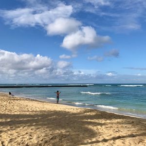 ビーチヨガはもちろん、ヨガも初めての体験で出来るか不安でしたが、インストラクターの先生はとても面白い方でわかりやすく指導して頂き、朝からとても素敵な時間が過ごせました。ハワイの白いビーチで青い海と空を見ながら、澄んだ空気をたくさん吸い込み、心が洗い流された気持ちになりました。最後は、ビーチタオルを敷いた上で少し居眠りをしてしまうくらい波の音が心地良かったです。日本では体験出来ない貴重な時間となりました。もし機会があればまた参加してみたいと思います。