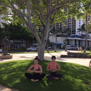 娘と2人で参加しました。早朝からお天気も良く、若くてかわいらしい先生のモーニングヨガ最高でした。ヨガ初体験の娘も汗をかきかき真剣に取り組んで、私は出来ないところはサボりつつ・・・BGMは波の音、小鳥のさえずり、心地よい先生の声だけ・・・何とも最高の至福の時間が過ごせました。やはりヨガは心と体のバランスを整えるのにはもってこいですね。翌日からの筋肉痛だけガマンすれば・・・w 朝からしっかり体を動かせば1日を有意義に過ごすことが出来るのでハワイ滞在中のモーニングヨガはおすすめです。