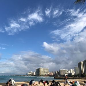 ビーチでのヨガは、風が気持ちよくリラックスできました。普段からヨガをしていますが、慣れない砂浜でのヨガは想像以上に大変でペースについていくには少々無理をしました。私の参加した日は、講師の方の知り合いが多く参加しており、慣れた方がいたからかもしれませんが…。朝一なので、少し体を動かしてから参加される事をおすすめします!ロイヤルハワイアンセンターより徒歩15分くらいです。海辺の道を真っ直ぐ行くとホノルルズーの門があるので、初めての方でも歩いて行けると思います。ハワイの海でのヨガは、いい想い出になりました。ありがとうございました。