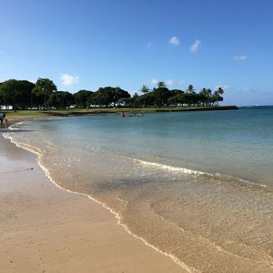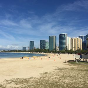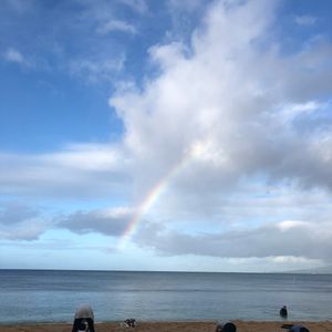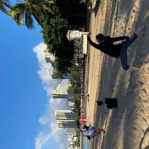 当日の早朝はお天気も良く、爽やかに晴れわたった青空と海を目の前に、砂浜でヨガを楽しみました♫ キレイな女性の日本人の先生が丁寧に見本を見せてくれるので、初心者の方でも問題ありません!参加者は全員日本人で、友達やカップルやら、様々でした。最後は砂の上に持参したバスタオルに寝転がって心を落ち着かせるのですが、あまりの心地良さにそのまま眠っちゃう子もいました!(*´ー`*) 帰り際にワイキキ方向の空を見上げると、キレイな虹がかかっていました!筋肉がほぐれてホッとして身体が気持ちいい〜!!って思った矢先だったので、ダブルで得した気持ちになりました!