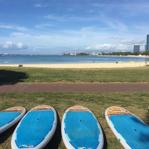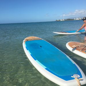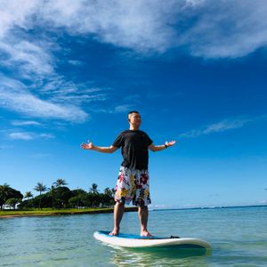 サンセットビーチの穏やかな波の上で浮かびながら気分も最高。先生が日本人で丁寧に日本語で1人1人レクチャーしてくれるので初めてでも安心です。ヨガの途中に海に落ちることもあるので水着着用&着替えやタオルは必須。近くにシャワーや簡易的なトイレ兼更衣室があります。貴重品は各自で持っていた方がベター。着替えは先生の車の中に入れます。サップヨガ 後ワイキキにあるカパリリ店に行くと可愛いエコバッグが頂けます。先生ありがとうございました。ワイキキに行った際には夜のサップヨガ も体験してみたいです。