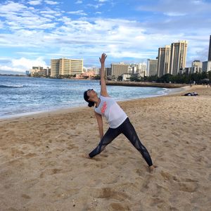 ハワイのビーチでのびのびヨガがしたいという思いで参加しました。