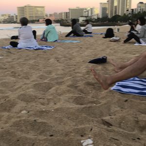 朝の有効活用のひとつとして、このビーチヨガは、ハワイの必須のアクティビティ!