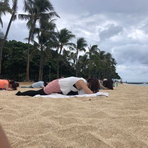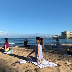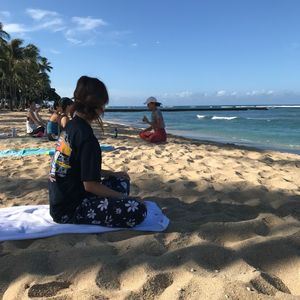 何年もホットヨガに通っていた私ですが、瞑想時や頭の中にいつもイメージしていたのはハワイのビーチでした。呼吸を波の音に見立て、ハワイのビーチでYogaをしている自分をイメージしていたのです。それが実現した瞬間でした。早朝の最高に気持ちの良いビーチでポーズをとっている時、幸せで感動していました。パワーヨガに近く少々キツかったですが、先生の説明もわかりやすく、最高のヨガが出来ました。ありがとうございました!!マハロ☆
