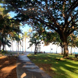 早朝のワイキキは、暑すぎず、人もまばらで静かでとても気持ちよかったです。