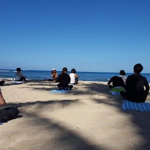 海を眺めながらのヨガ、とっても気持ち良かったです。朝早い時間なので爽やかですが、最後の方になると太陽がどんどん上ってきて暑くなってきました。普段からヨガをやってる者にとっては少し物足りない感じでしたが、インストラクターの先生は若くて綺麗で優しかったです。後半だけヨガマットやビーチタオルを使えたのですが、初めは砂の上に直接座ったり四つん這いになったりだったので少し痛かったです。でもビーチでのヨガはずっと気になってたので、今回娘と2人で参加できてとっても貴重な体験でした。