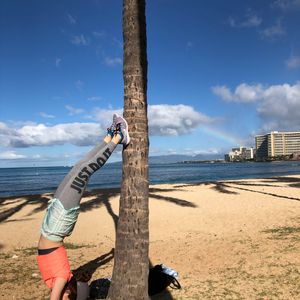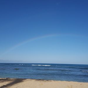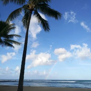 すっきり晴れた空の下でしたが、日差しはあるものの朝なのでそこまで暑くなく、気持ちが良かったです。集合場所のホノルル動物園まではロイヤルハワイアンセンター付近から歩きました。ヨガの最中に雨がぱらつき虹が出て、最高の演出でした。滞在中、ヨガは1回だけでしたが、以降も早起きしてビーチに行くのが習慣になりました。